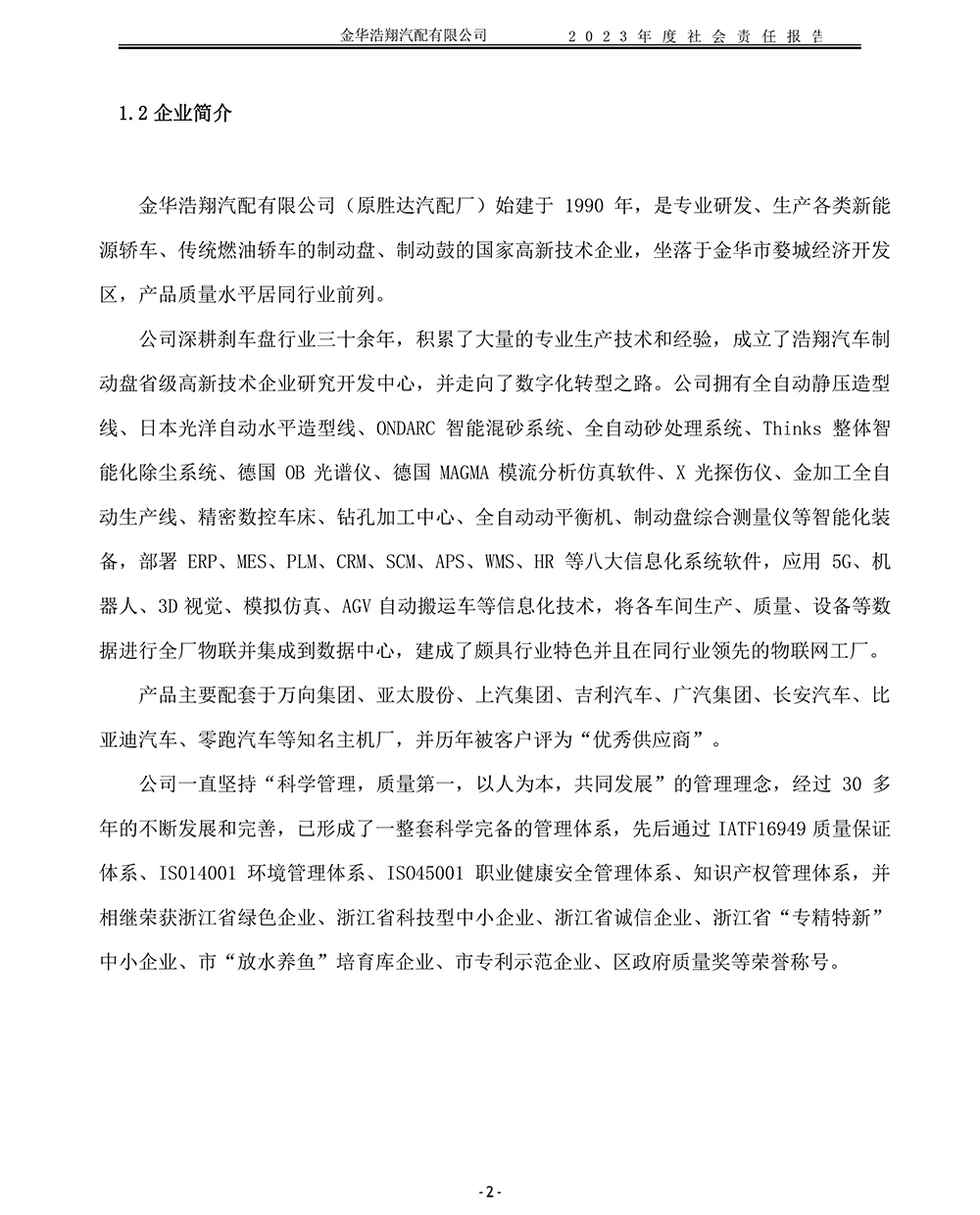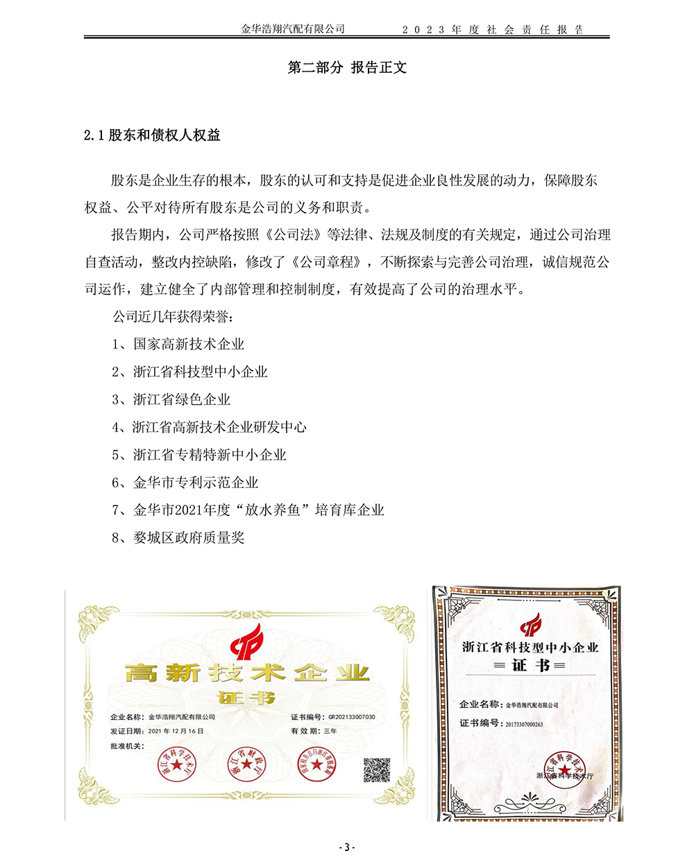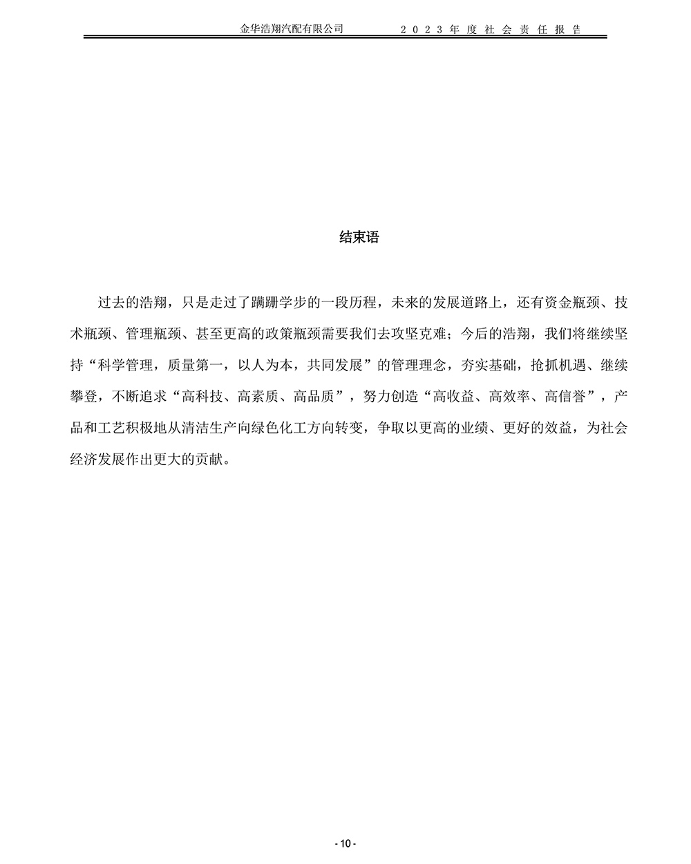 2023年度浩翔汽配社會(huì)責(zé)任報(bào)告